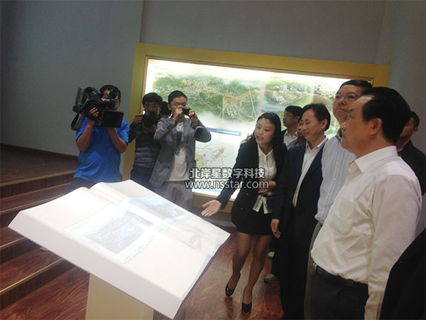 解說員帶領(lǐng)領(lǐng)導(dǎo)參觀電子書系統(tǒng)
