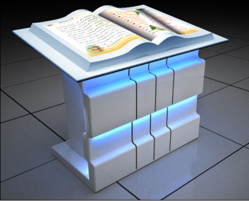 虛擬電子書猶如一本打開的書籍,里面可以記載豐富的資料(包括動畫、視頻、圖片)。參觀者可以揮動手臂“翻閱”書籍,自左向右或者自右向左,還可以選擇章節(jié),快速找到您想翻閱的內(nèi)容,就像翻閱一本普通的雜志一樣,這就是虛擬翻書系統(tǒng)帶來的驚喜!這種虛擬翻書形式新穎,視覺沖擊力強,給人以神奇感,而且可以展示的信息量大。