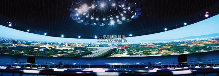 環(huán)幕(立體)投影系統(tǒng)是一種視聽高度沉浸的虛擬仿真顯示環(huán)境,采用多臺(tái)投影(通道)組成的環(huán)形投影屏幕,環(huán)形幕半徑通常有100~360弧度不等,由于其屏幕半徑寬大,觀眾的視覺完全被包圍,再配合環(huán)繞立體聲系統(tǒng),使參與者充分體驗(yàn)一種高度身臨其境的三維立體視聽感受,獲得一個(gè)具有高度沉浸感的虛擬仿真可視環(huán)境,是傳統(tǒng)平幕顯示設(shè)備不能比擬的,環(huán)幕投影最重要的應(yīng)用就是立體投影系統(tǒng)。