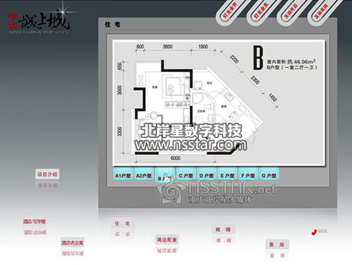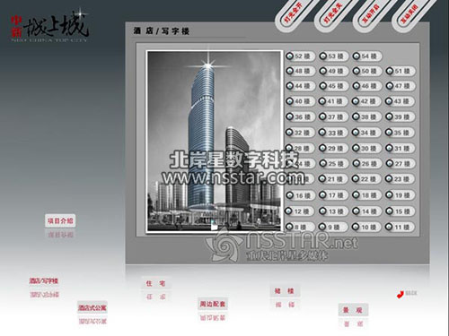 客戶可通過安裝在沙盤上的觸摸屏查詢樓盤的詳細信息,包含開發(fā)商介紹、樓盤介紹、景觀介紹、戶型查閱等。