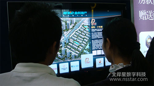 金科展廳共安裝兩臺42寸液晶電視顯示多媒體軟件,互動和查詢軟件的顧客絡繹不絕,給樓盤帶來很好的民法效果。