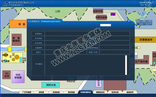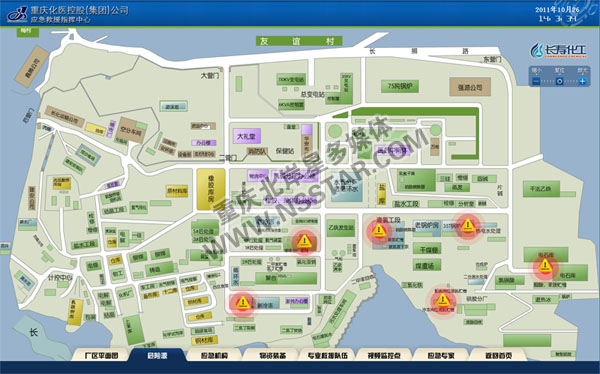 本軟件應(yīng)用于重慶化醫(yī)集團(tuán)總部應(yīng)急救援指揮中心,操作便捷,一目了然,功能清晰,配合LED大屏幕指揮旗下眾多子公司應(yīng)急救援系統(tǒng)。