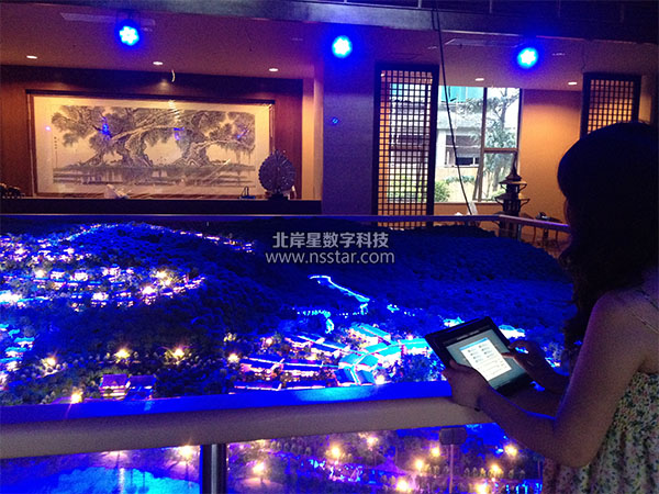 本系統(tǒng)包含iPad電子樓書一套、iPad中控系統(tǒng)、iPad沙盤燈光控制系統(tǒng)、沙盤燈光場(chǎng)景渲染系統(tǒng)、影音播放室。沙盤場(chǎng)景燈光氛圍體現(xiàn)了整個(gè)別墅區(qū)從清晨、到正午、晚霞、日落、萬家燈火、月光等幾個(gè)階段的氛圍自動(dòng)轉(zhuǎn)換。