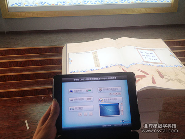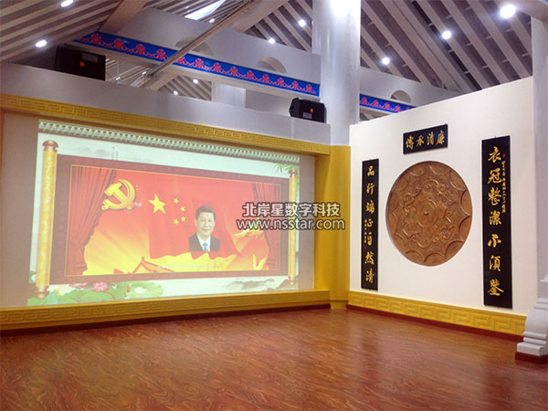 紅外人體自動感應(yīng)投影播放系統(tǒng):北岸星數(shù)字科技為其制作了8分鐘片長的視頻宣傳片,當(dāng)參觀者進(jìn)入本展廳時,墻上的畫卷會自動展開,并播放視頻片。導(dǎo)游也可用iPad中控系統(tǒng)來控制本系統(tǒng)的播放、暫停、停止、音量、投影機(jī)的開關(guān)等。