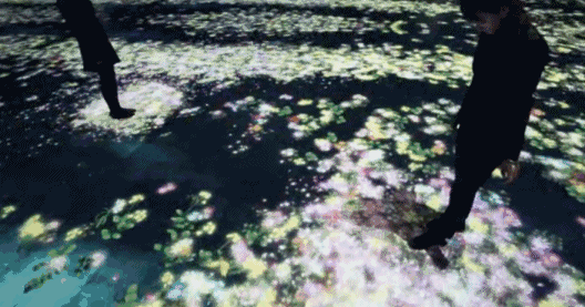 另外,在交互的表現(xiàn)上,又分為參與者與技術(shù)裝置互動、參與者與同樣參與其中的人互動。與技術(shù)裝置互動的例子,如Teamlab作品中,花朵的樣子、魚鳥常常由參與者的行為來決定。與人做出互動的例子,一般以行為藝術(shù)類的活動或者項目居多,如引進國內(nèi)還不久的沉浸式戲劇《Sleep No More》;或者是觀眾之間進行互動,使之成為作品內(nèi)容的一部分,這般情況往往是以行為藝術(shù)居多,如行為藝術(shù)之母瑪麗娜·阿布拉莫維奇的作品,雖然鮮有高科技的設置,卻能讓人在參與的過程中倍感動容、思緒萬千。