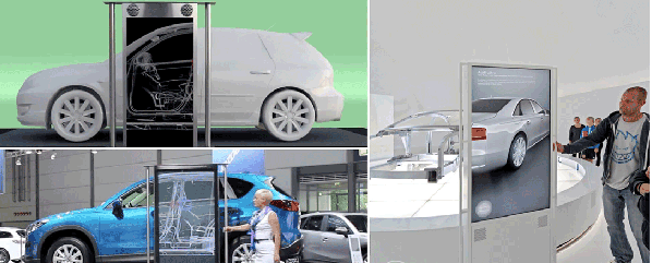 觀眾用手推動液晶屏移動,即可切換播放內(nèi)容。