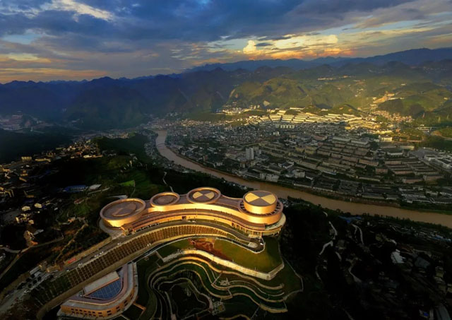 茅臺(tái)國(guó)酒文化主題景區(qū)《天釀》位于茅臺(tái)鎮(zhèn)西山,由懷仁市政府和利亞德勵(lì)豐文化共同投資建立,旨在把茅臺(tái)小鎮(zhèn)打造成“貴州第一、全國(guó)一流、世界知名”的特色小鎮(zhèn),是貴州“十三五”重點(diǎn)文化產(chǎn)業(yè)項(xiàng)目。項(xiàng)目總投資近6億元,總用地面積達(dá)7.6萬(wàn)平方米。為了同時(shí)滿足存量酒商的客人體驗(yàn),和提升增量的旅游客源需求,勵(lì)豐文化設(shè)計(jì)了一個(gè)酒壇和三個(gè)酒碗作為劇場(chǎng)的建筑形態(tài),成為茅臺(tái)的一個(gè)地標(biāo),旨在打造成為市民休閑、政企接待、商旅觀光三個(gè)客群的共同目的地。