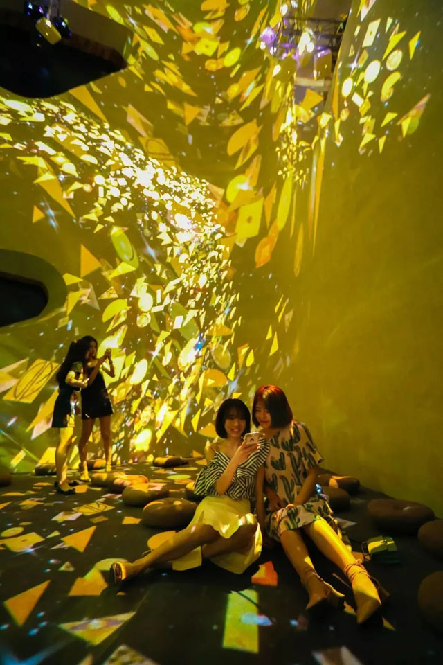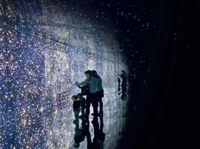 “無限之境“利用藝術(shù)中心的觀光電梯天井,打造了一個全世界獨一無二的時空隧道,可以通過地面和乘坐電梯兩種方式觀展,打破常規(guī)的展覽方式,帶來不一樣的觀展體驗。