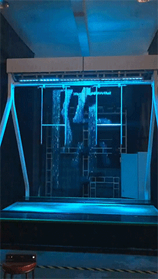 通過(guò)數(shù)字投影的巧妙融合,展示出震撼的瀑布畫面,結(jié)合適當(dāng)?shù)膱?chǎng)景搭建和現(xiàn)場(chǎng)的溫度調(diào)試,觀眾仿佛置身于水簾洞天之中。