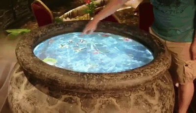 體現(xiàn)了中國(guó)人注重天地環(huán)境和諧統(tǒng)一的美學(xué)思想,嘉賓們與石缸中的錦鯉互動(dòng),有幾率召喚出象征仁壽吉祥的金龜,收獲金龜美好的祝福。
