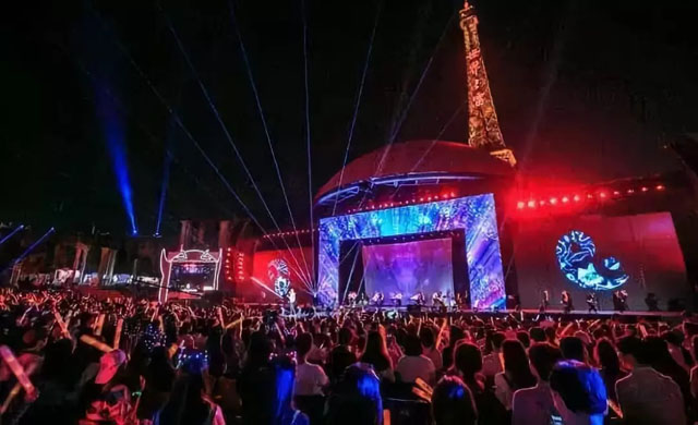 演唱會(huì)現(xiàn)場科技感滿滿,在現(xiàn)場多塊立體屏幕的環(huán)繞下,不同二次元世界的經(jīng)典場景肆意變換,現(xiàn)場觀眾也跟著場景的變換自由穿越在不同的異次元空間中,從涂山到靈魂之海再到龍虎山下,經(jīng)歷了一場刺激又夢(mèng)幻的時(shí)空之旅。