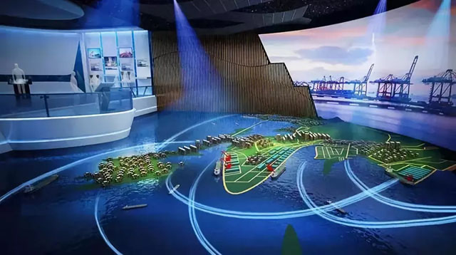 在城市規(guī)劃館中,最不可缺少的就是沙盤。沙盤是一個(gè)城市的微縮,向觀眾提供一個(gè)鳥瞰的角度觀察城市,通覽全局。但傳統(tǒng)的沙盤模型只能在一個(gè)時(shí)間維度上表現(xiàn)城市,對(duì)于一個(gè)長(zhǎng)達(dá)幾年甚至幾十年的城市規(guī)劃來說,表現(xiàn)力遠(yuǎn)遠(yuǎn)不足。數(shù)字沙盤可動(dòng)態(tài)地展現(xiàn)了一個(gè)城市的全貌,在不同的時(shí)間維度上跳躍變化,是闡述一個(gè)城市規(guī)劃的最佳工具。港珠澳大橋規(guī)劃正是利用了數(shù)字沙盤向人們打開了了解這座傳奇大橋的全新窗口。