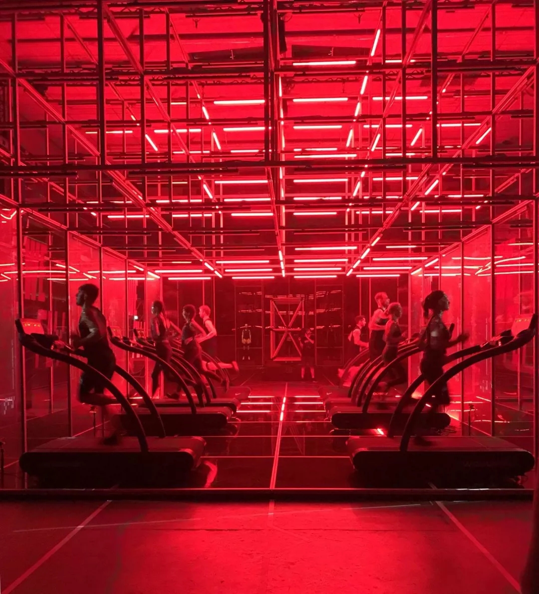 為了慶祝NIKE旗下新鞋的上市,NIKE最近委托創(chuàng)意團隊Monomango和Sunst Studio在德國柏林打造了一個與眾不同的健身空間,它由一個巨大的LED燈光網(wǎng)格裝置組成,裝置上的紅色燈光來回閃爍并不時環(huán)繞整個空間,加上工業(yè)冷峻的背景音樂讓整個健身房增添了幾分未來之感。
