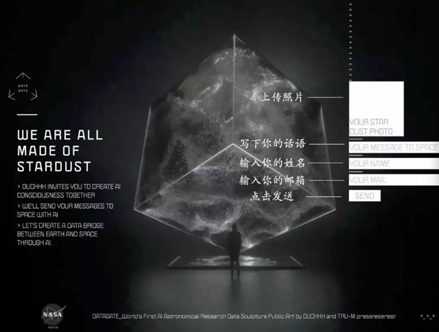 科學(xué)的數(shù)據(jù)基礎(chǔ)加上藝術(shù)家的腦洞大開,吸引了NASA(美國太空總署)外系行星研究中心負(fù)責(zé)人Dawn Gelino女士的加入,Dawn Gelino女士給予設(shè)計(jì)過程中的科學(xué)指導(dǎo),她認(rèn)為Ouchhh在以一種全新的、獨(dú)特的方式進(jìn)行創(chuàng)作,而"Data Gate"正是藝術(shù)和技術(shù)天衣無縫的融合體現(xiàn)。