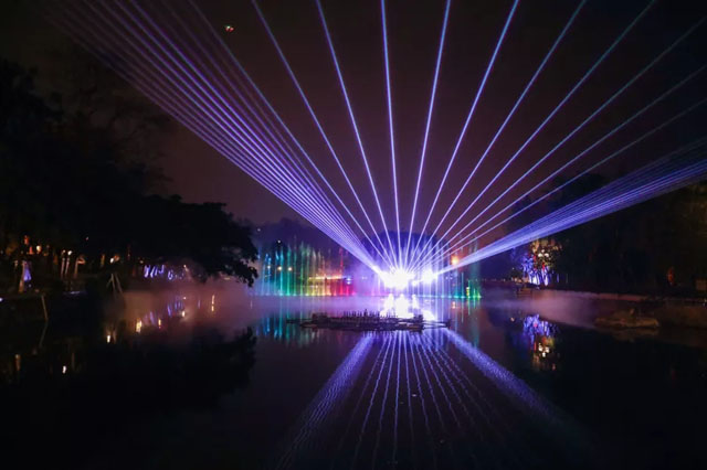 這場(chǎng)氣勢(shì)磅礴的燈光秀,融合了3D投影、激光、舞臺(tái)燈具、景觀燈具、水秀、霧森及音樂等多種類型的表現(xiàn)形式,每種類型都有自身特定的色彩和開關(guān)控制,異常復(fù)雜,因此對(duì)燈具的光效、穩(wěn)定性,特別是聯(lián)動(dòng)控制提出了非常高的要求。