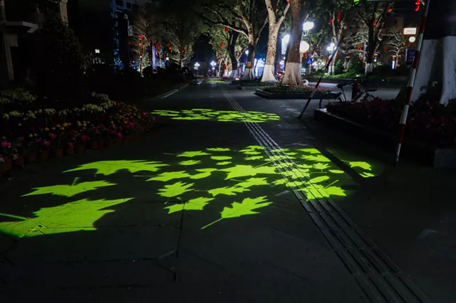 在兩極一軸中,達(dá)森燈光的圖案燈、投影機(jī)、水紋燈、光束燈等多種文創(chuàng)燈光燈具,也靈活運(yùn)用在新會(huì)美術(shù)館、新會(huì)人民會(huì)堂周邊、圭峰山永鎮(zhèn)山門、圭峰路、公園路、新豪景廣場(chǎng),盆趣園,艇仔湖等幾大節(jié)點(diǎn),下面就跟隨小編來一場(chǎng)“眼睛旅行”吧: