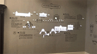 漢口英租界歷史建筑展示館中采用觸摸電容墻形式,將互動內(nèi)容融入展板。從漢口英租界建筑風(fēng)格變遷、建筑細部對比到歐洲經(jīng)典建筑科普,參觀者只需觸摸相應(yīng)區(qū)域,就會有新穎有趣的光影效果出現(xiàn)在眼前。尤其是不同歷史時期的建筑風(fēng)格,及門、窗、立柱、外墻雕飾四種典型建筑細部,手繪線稿簡單形象的勾勒,再通過電容墻實現(xiàn)互動效果。