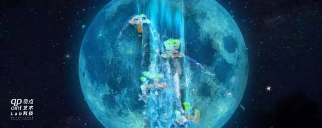 以超乎想象的新媒體手段,將傳統(tǒng)的筆墨用新型的點(diǎn)線面再次組合,演繹出青綠色彩的生成。讓觀眾置身其中,與科技對(duì)話,與傳統(tǒng)藝術(shù)交流。