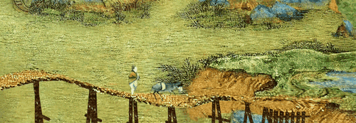 欣賞《千里江山圖》中的“移步之景”,領(lǐng)略江河湖海的華美壯麗;與畫面進(jìn)行互動(dòng),體驗(yàn)“點(diǎn)山成鶴”的妙趣。