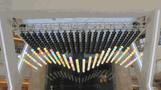 美輪美奐的夢(mèng)幻浮球時(shí)而靜若處子,時(shí)而動(dòng)若脫兔;那上下舞動(dòng)的身姿仿佛就是一名舞藝高超的舞者在鋼琴上跳著曼妙的舞蹈,通過(guò)升降位置和燈光閃爍變化,變換出各種造型的動(dòng)態(tài)雕塑,令觀者震撼。在此時(shí)此刻,唯一能做的只有跟隨著這內(nèi)心的動(dòng)力,把自己沉浸在這藝術(shù)的海洋里面,來(lái)享受這巨大的視覺美宴。