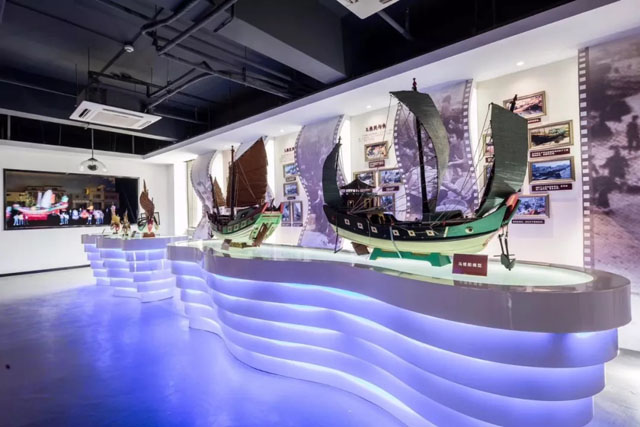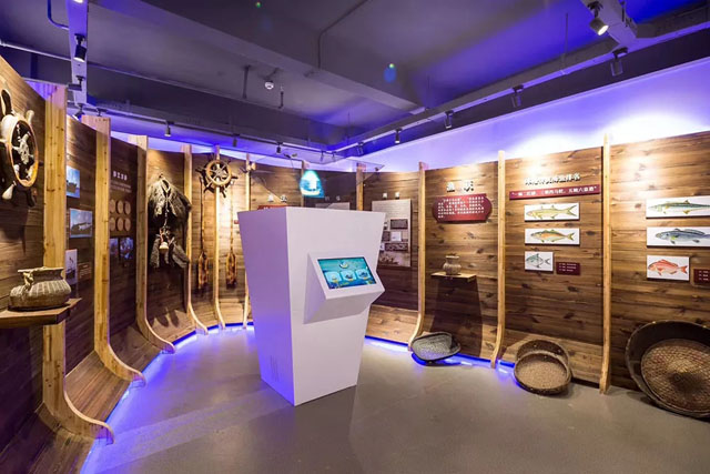 二層為漁人故事,主要講述這里的漁人們?cè)跉q月的磨練中形成特有的漁業(yè)技藝、生活習(xí)俗、宗教信仰以及屬于他們的共同回憶。在展館的展示形式上,除傳統(tǒng)的圖板展示和實(shí)物展示以外,還加入聲光電等高科技手段,結(jié)合雕塑場(chǎng)景、紀(jì)錄影片、AR、幻影成像、體感互動(dòng)等多元化展示形式。