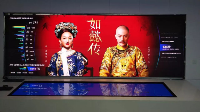 北京總部大樓作為騰訊文化創(chuàng)新總部,大樓及內(nèi)部設計無處不體現(xiàn)大企風貌。步入大樓之初,“通過互聯(lián)網(wǎng)服務提升人類品質(zhì)生活”的戰(zhàn)略思路清晰可見,多個行業(yè)勾勒出的“北斗七星”圖潛藏了騰訊的宏偉愿景和藍圖。為了達到大廳特殊的設計需求,該屏幕采用大型吊裝滑軌結(jié)構(gòu)設計,設計師別出心裁地安裝于木質(zhì)紋理有機玻璃后方,通過透光性材質(zhì)體現(xiàn)畫面內(nèi)容,同時可根據(jù)需求平行移動,創(chuàng)新設計之余也讓后期維護更為便捷。