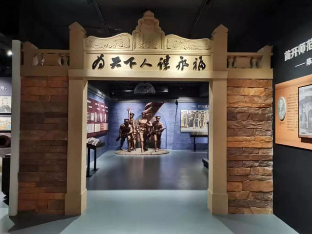 最引入注目的是毛澤東在抗日戰(zhàn)爭時期于延安揮筆寫下的“抗日宣言”和一筆揮就的“奮斗”墨寶。展現(xiàn)了自解放戰(zhàn)爭至開國大典的古國新生進程。