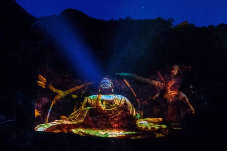 秦嶺洞天福地景區(qū)裸眼3D巨崖投影秀