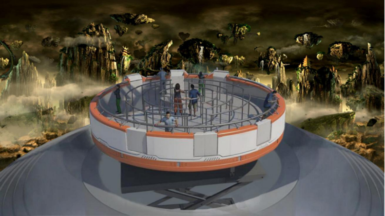 動(dòng)感自轉(zhuǎn)升降平臺(tái):圓形平臺(tái)可360°旋轉(zhuǎn)并自由升降用來(lái)豐富體感體驗(yàn)
