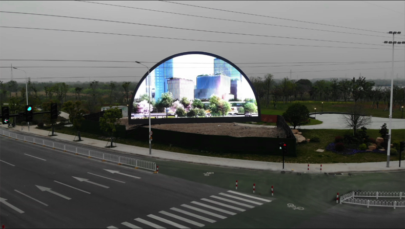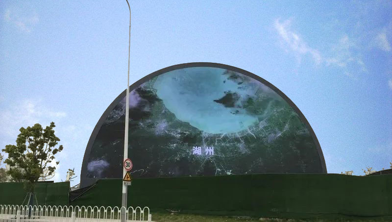 由湖州南太湖控股集團有限公司建造的湖州首個異形LED顯示屏正式點亮。該顯示屏位于湖山大道與三環(huán)北路交叉口,高13米,寬24米,屏面積約250㎡,為湖州市首個半圓異形大屏。