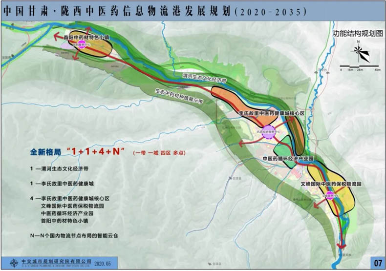 規(guī)劃理念,主要突出綠色發(fā)展、高質(zhì)量發(fā)展,堅持“渭河為軸、渭水為魂、組團布局、生態(tài)鏈接、中醫(yī)藥一二三產(chǎn)融合發(fā)展”?臻g布局,重點打造“一帶、一城、四區(qū)、多點(1+1+4+N)” ,核心區(qū)面積30平方公里!耙粠А奔簇灤┪己?xùn)|西長約50公里、南北寬約4公里的渭河生態(tài)文化經(jīng)濟帶。