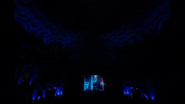 為了設(shè)計一款這樣的沉浸式體驗,Oculus與VTProDesign先是對洛杉磯劇院進行了精密的3D掃描,接著用22個投影儀將16Kx8K分辨率的沉浸式畫面投射在影院的穹頂上,除了投影儀外,還使用16個激光設(shè)備來測繪場地的細節(jié),以及制造立體的光線和效果,甚至還會投射在觀眾群中,產(chǎn)生互動。