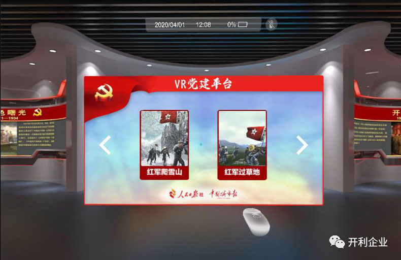 教育黨員不忘初心,體驗我黨艱苦奮斗戰(zhàn)爭場面,體驗者帶上VR體感交互設備或眼鏡,就能在大氣磅礴的背景音樂中,身臨其境的參觀體驗宏偉莊嚴的紅色教育陳列館。