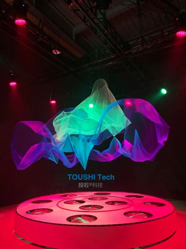 活動(dòng)中,投石科技通過(guò)對(duì)12臺(tái)電風(fēng)扇的精準(zhǔn)風(fēng)力控制內(nèi)環(huán)和外環(huán)的2塊紗幔,紗;(dòng)藝術(shù)裝置結(jié)合音樂(lè)和燈光,為觀眾帶來(lái)了一場(chǎng)實(shí)時(shí)的充滿(mǎn)藝術(shù)感的表演。