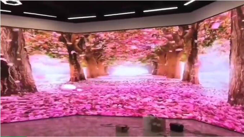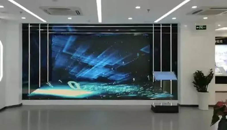 該屏為針對(duì)現(xiàn)場(chǎng)環(huán)境設(shè)計(jì)的P1.8L形創(chuàng)意展示屏,采用播放宣傳片時(shí)具備裸眼3D的效果,打破傳統(tǒng)LED拼接屏平面化觀感,給參觀者帶來一場(chǎng)視覺盛宴。