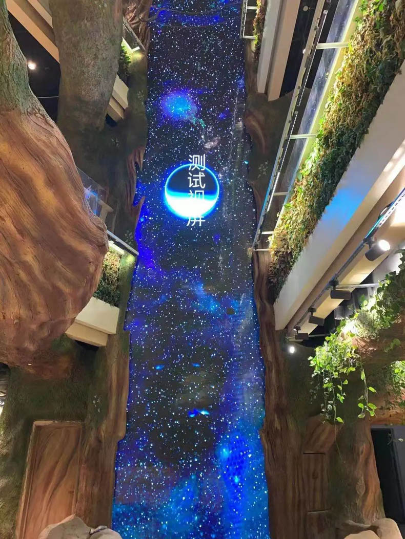 該屏為?低暈楹贾菽成虉(chǎng)打造的P4水幕屏,整體比例為3(寬)*14(高),遠(yuǎn)看有銀河落九天的美感,近看才能發(fā)現(xiàn)原來銀河竟是由一個(gè)一個(gè)像素點(diǎn)組合而成,讓人不禁感嘆其顯示效果的靈動(dòng)逼真。