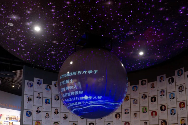 校史館建筑面積3490平方米,由前廳、序廳、序章、編年體展區(qū)、專題展區(qū)、愿景廳、藝術(shù)館等部分組成。館內(nèi)展示綜合采用現(xiàn)代信息技術(shù)和視覺美學(xué),通過圖文、實(shí)物、多媒體、虛擬影像、立體造型、場景還原等多種方式,集中展現(xiàn)了學(xué)校六十八年來與共和國發(fā)展共命運(yùn)、與祖國石油工業(yè)同呼吸、與石油高等教育共奮進(jìn)的光輝歷程,體現(xiàn)了學(xué)校從首都北京的紅色激情到黃河岸邊的金色豪邁、再到逐夢青島的藍(lán)色暢想,一代代石大人以服務(wù)國家能源戰(zhàn)略為己任,為黨忠誠、為國育才所書寫的奮斗詩篇。