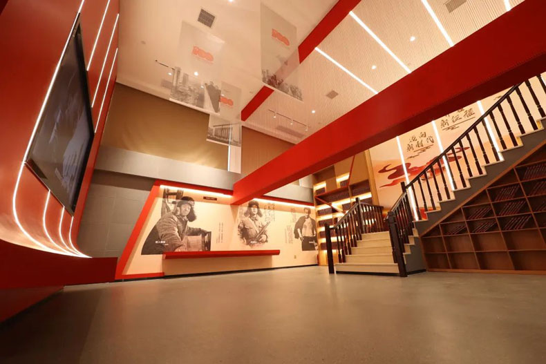 在主題色彩濃郁的空間中,回顧雷鋒、焦裕祿等人的先進(jìn)事跡;巧用層高優(yōu)勢,渲染時代氛圍,凸顯日新月異的進(jìn)步。