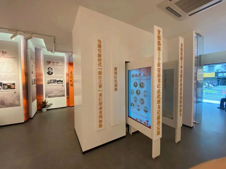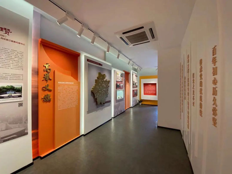 陳列室分為“力挽狂瀾”“甘灑熱血”“高舉義旗”“根脈永續(xù)”四個單元,從宏觀微觀多角度多層次重現(xiàn)歷史,再現(xiàn)當年黨組織在浙江艱苦奮斗的革命歲月與光輝歷程。在設計上,充分利用原建筑自身特色,將原建筑室內(nèi)室外綜合打造,還原浙江省委機關舊址的獨特韻味。